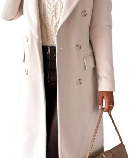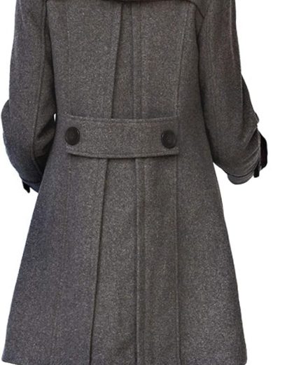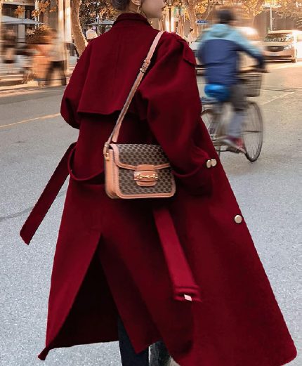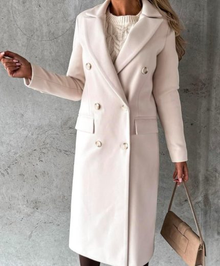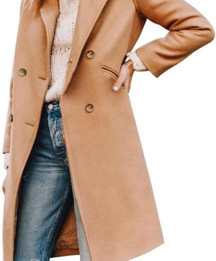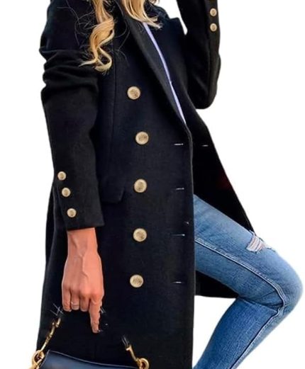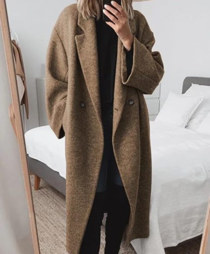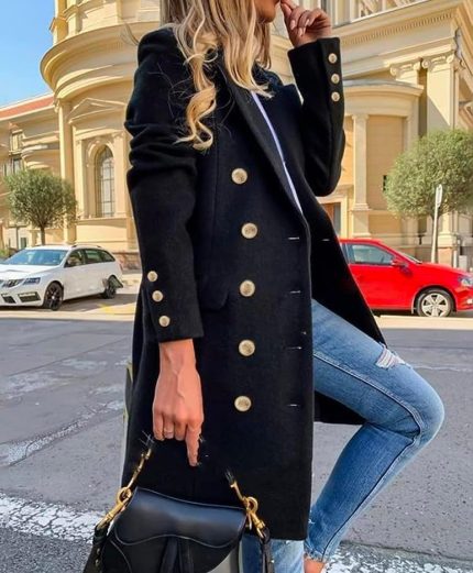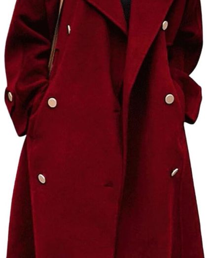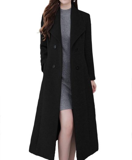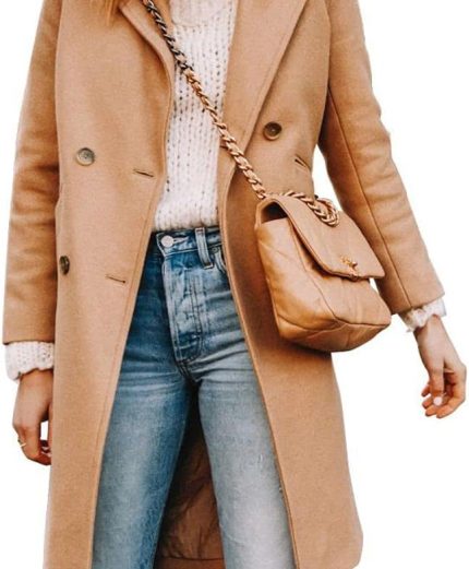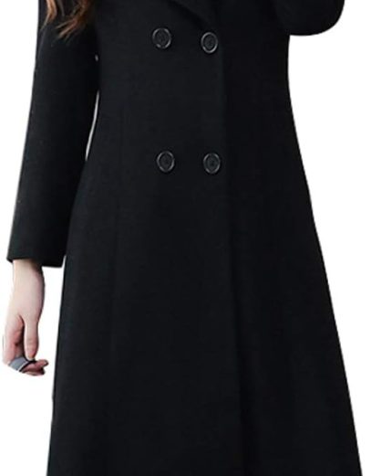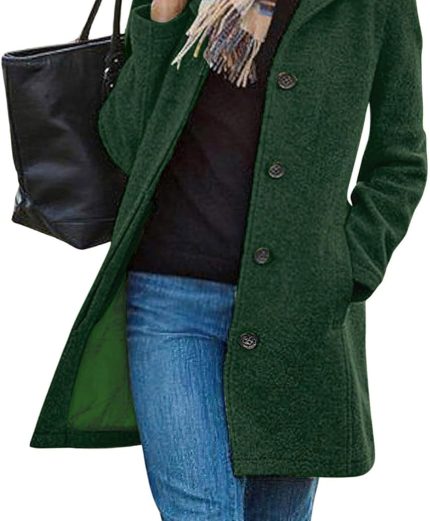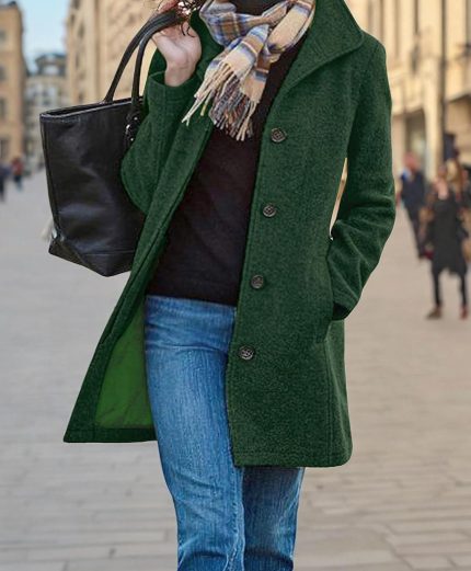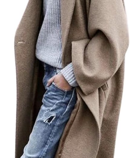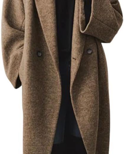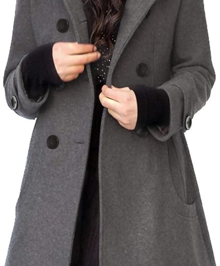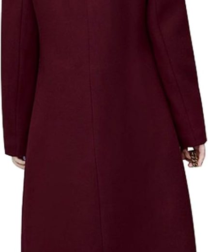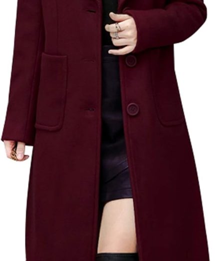 women Big Notch Lapel Single Breas Mid-Long Wool Blend Coat