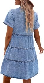 Denim Dress for Women Babydoll Tiered Short Sleeve Button Down Jean Shirt Dresses