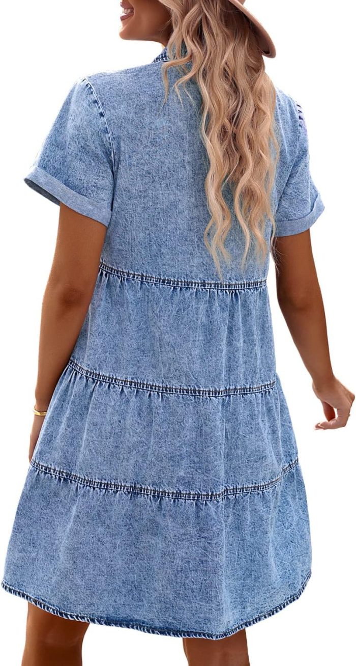 - Feature: Babydoll dresses for women features collared neck, solid color design, short sleeves, and tiered design at back, making the shirt dress for women elegant and flattering. Tiered babydoll denim dress is a must-have item in your wardrobe as a daily wear dress.