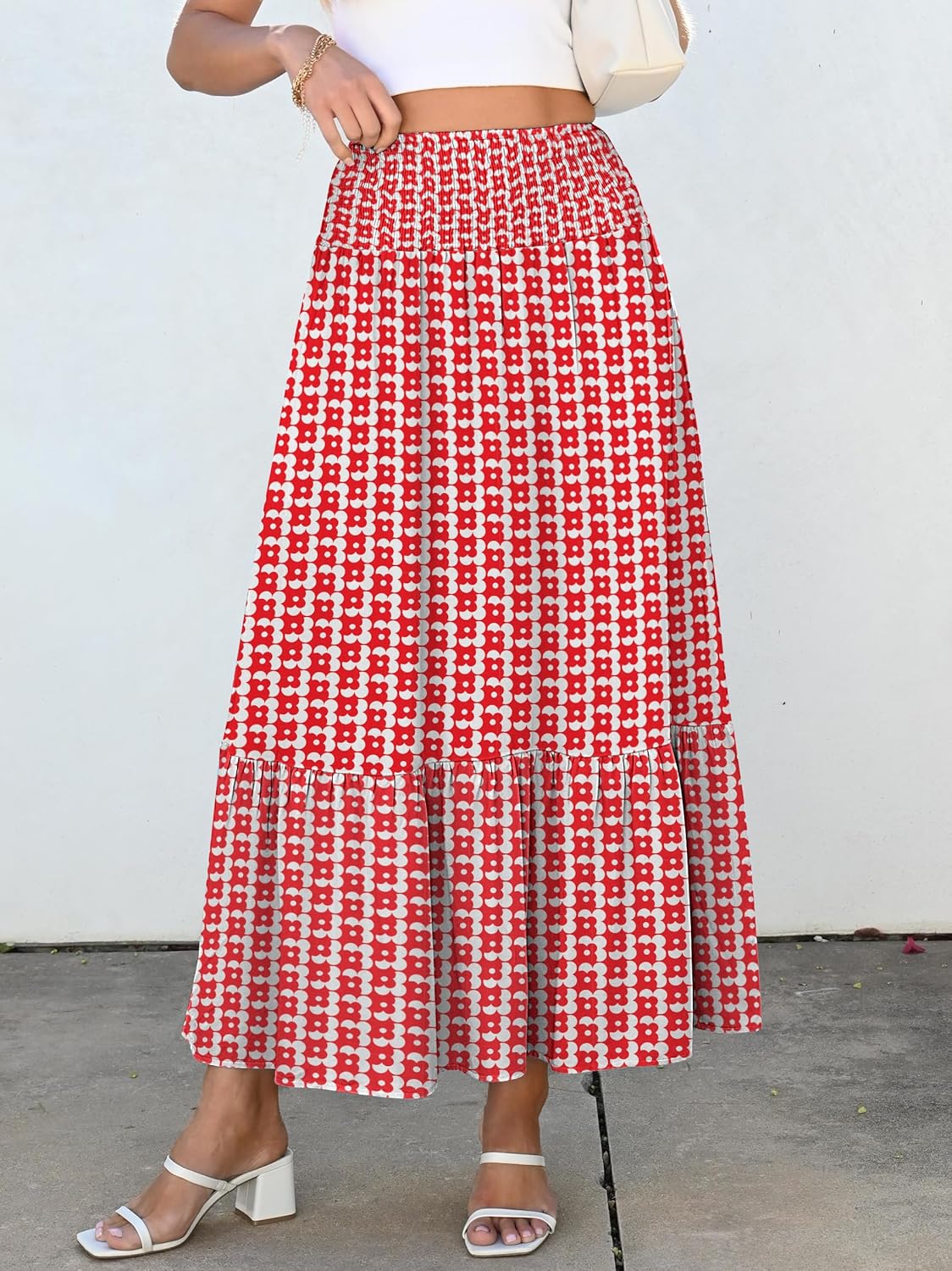 - Features – Women’s bohemian floral skirt, elastic high waisted, pockets, ruffle hem. Suitable for home or daily wear, shopping, beach, party, and vacation.