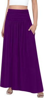 Maxi Skirts for Women High Waisted Long Skirts with Pockets Ankle Length Casual Skirt