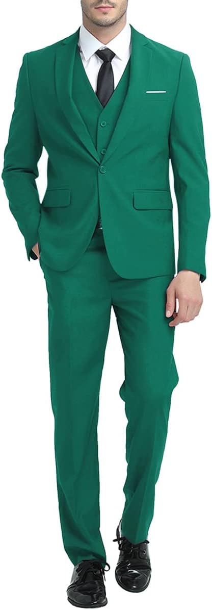 Men 3-Piece Suit Notched Lapel One Button Slim Fit Formal Jacket Vest Pants Set