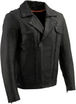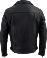 Men Black Leather Motorcycle Riders Jacket w/Multi-Utility Pockets