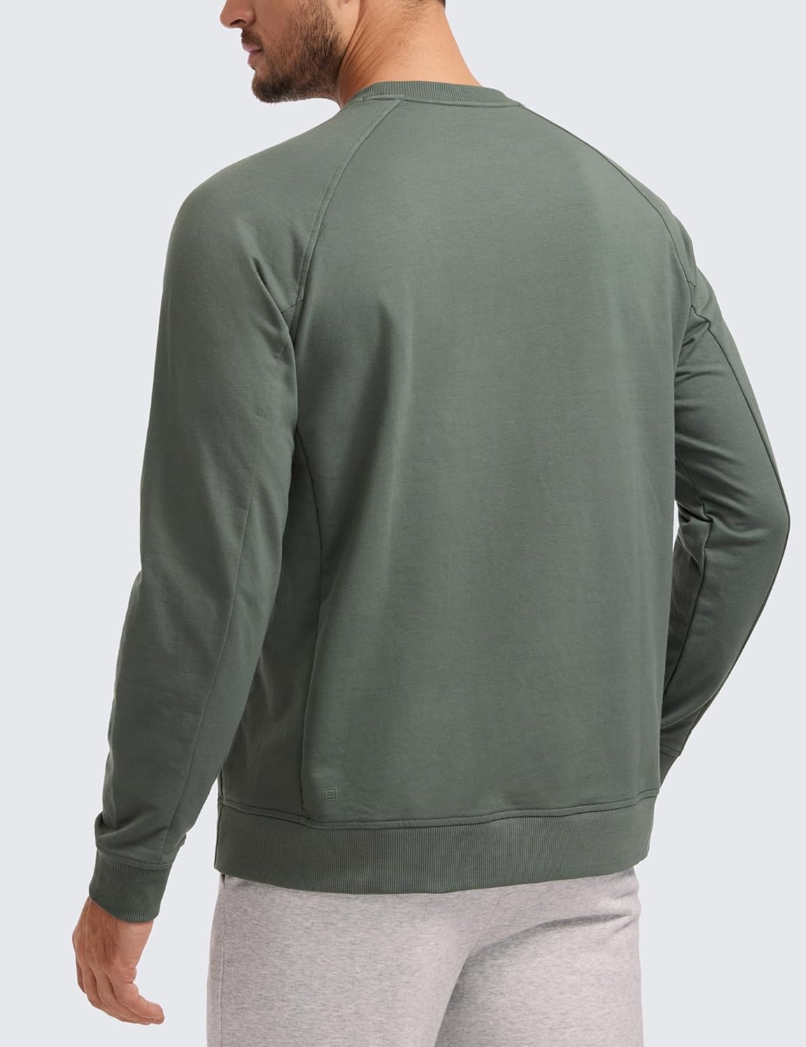 Men Crewneck Sweatshirts French Terry Athletic Workout Sweat Shirts Casual Pullover Tops with Zipper Pocket