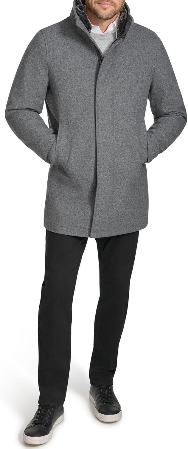Men Thermal Single Breasted Wool Blend Coat Business Peacoat with Detachable Zipper