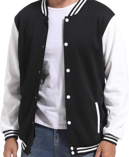Men Fashion Varsity Jacket Causal Slim Fit Cotton Letterman Baseball Bomber Jackets