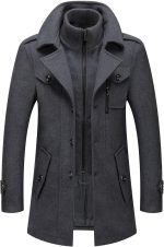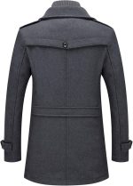 Men Thermal Single Breasted Wool Blend Coat Business Peacoat with Detachable Zipper