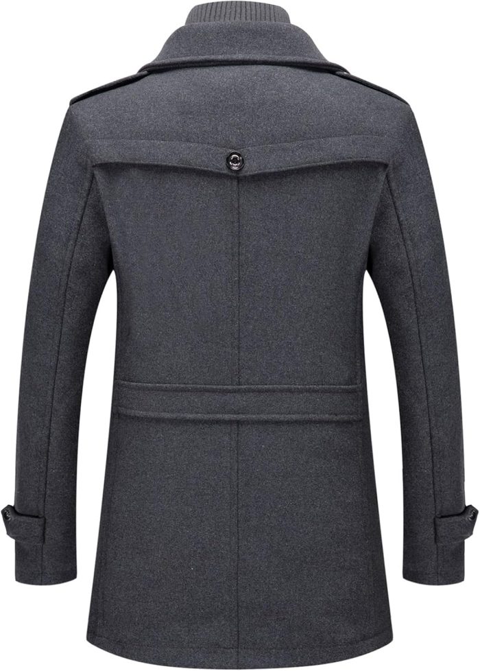 Men Trench Coat Notch Lapel Double Breasted Peacoat Wool Blend Casual Long Overcoat