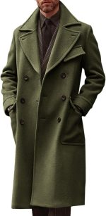 Men Trench Coat Notch Lapel Double Breasted Peacoat Wool Blend Casual Long Overcoat
