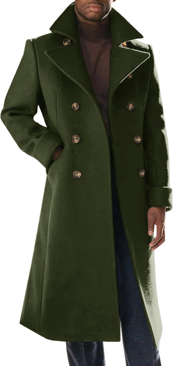 Men Trench Coat Notch Lapel Double Breasted Peacoat Wool Blend Casual Long Overcoat