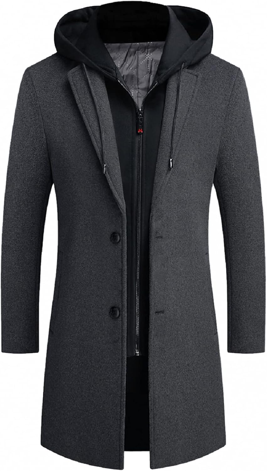 - Material: Men Trench Coat is made of 80% wool, 20% polyester, lining: 100% polyester, High quality wool fabric,warm,soft and breathable,thick padding lined.