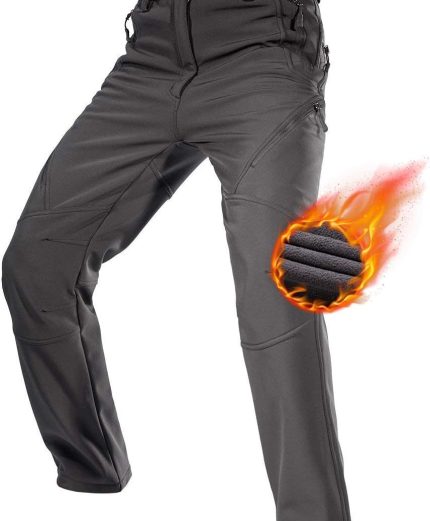 Men Fleece Lined Outdoor Cargo Hiking Pants Water Repellent Softshell Snow Ski Pants with Zipper Pockets