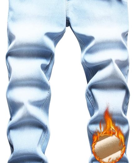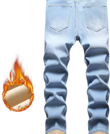 Fleece Lined Jeans Men,Winter Flannel Lined Jeans for Men Thermal Thicken Stretch Warm Denim Pants