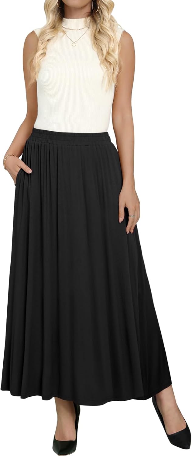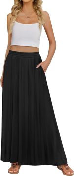 Maxi Skirts for Women High Waisted Long Skirts with Pockets Ankle Length Casual Skirt