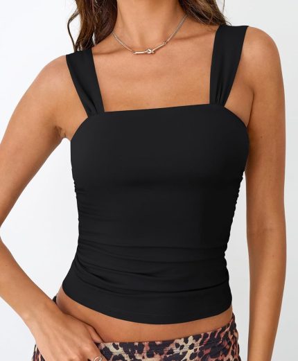 - Material: This tank tops has a satin finish as smooth as baby’s skin, with a double layer on the chest to prevent see-through. Light and slightly textured, skin-friendly and breathable, perfect for hot summer days