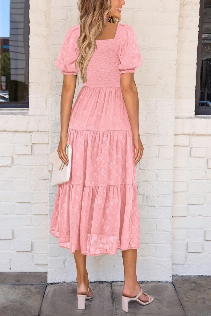 - FEATURES: Midi Dresses for Women; Ruffle Short Sleeve Dress for Women; Square Neck Dress with Pockets; Smocked Floral Dress for Women; Modest A Line Dresses For Women; Tiered Dress Women; Fit and Flare Dress for Women; Summer Wedding Guest Dress
