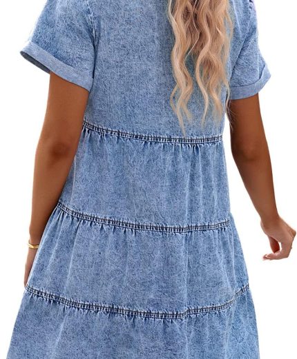 Astylish Women V Neck Roll up Sleeve Button Down Blouses Tops